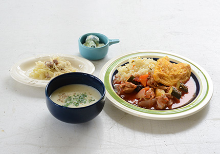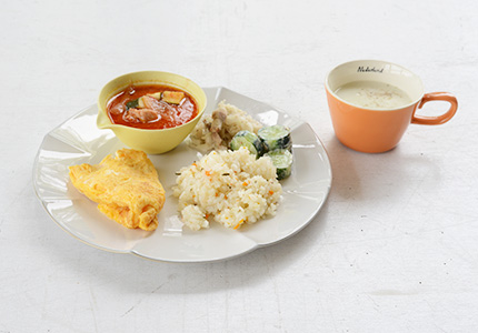 色鮮やかで、見た目も香りも爽やかな社食でした。