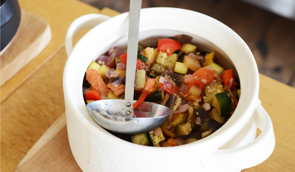 そこに夏野菜たっぷりのラタトゥイユをかけていただきます。