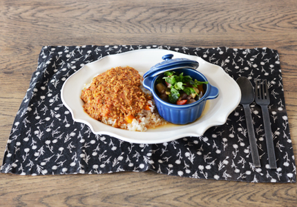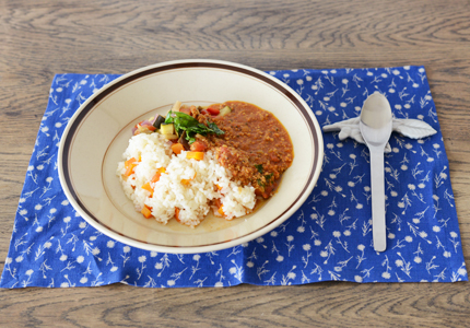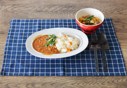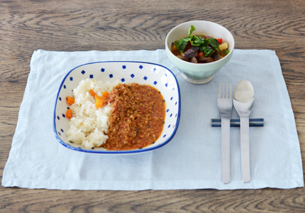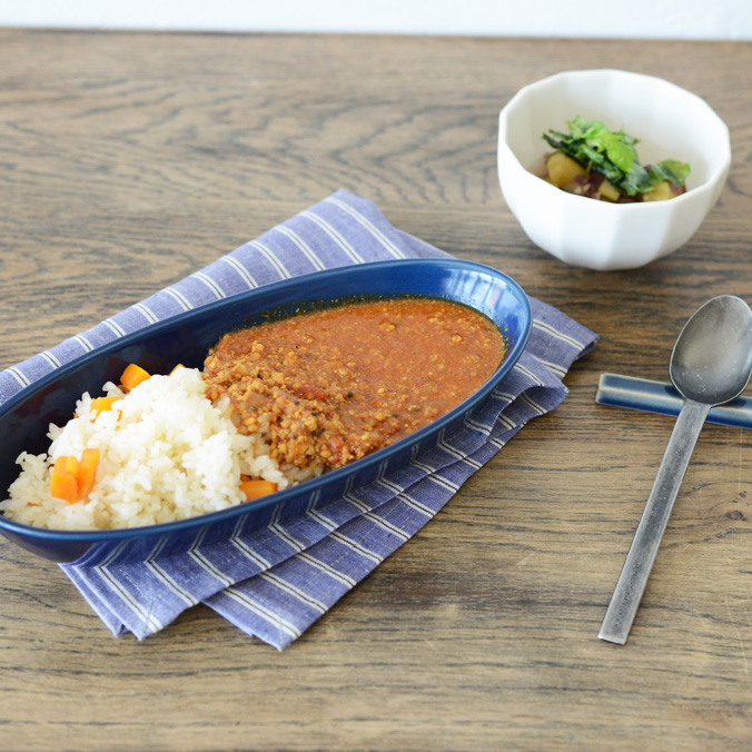 ランチョンマットとカレー皿のコーディネート。