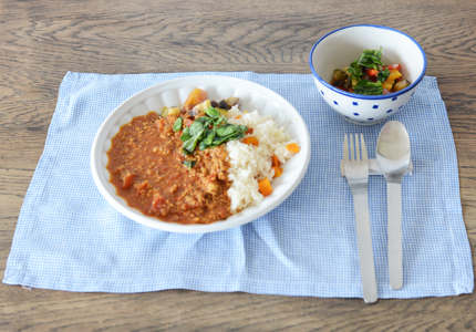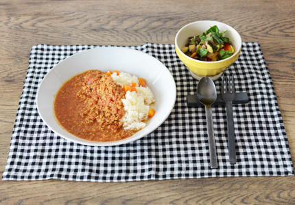 今回のメニューはチキンキーマカレー。