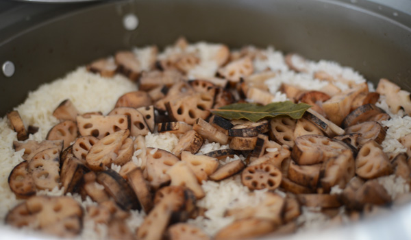 小鉢と長角皿の重ね使いがポイントです。(飯碗)トロワリーニュ 飯碗大