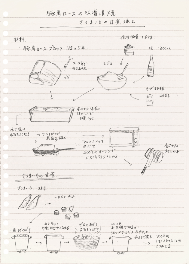 今回のメニューは豚の味噌漬け焼きがメインの一汁三菜。