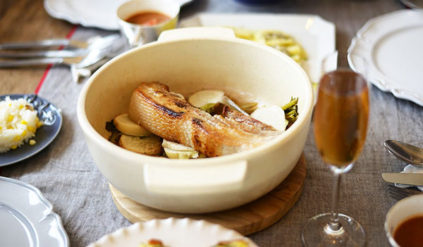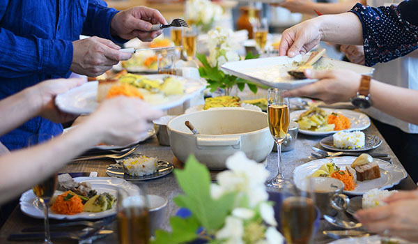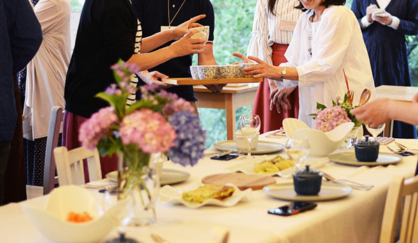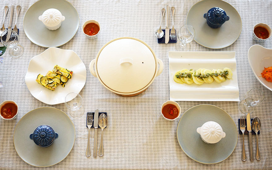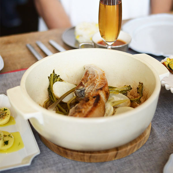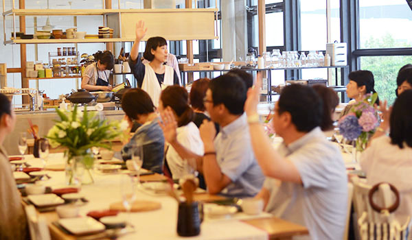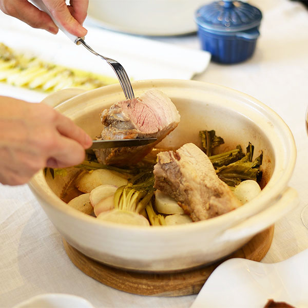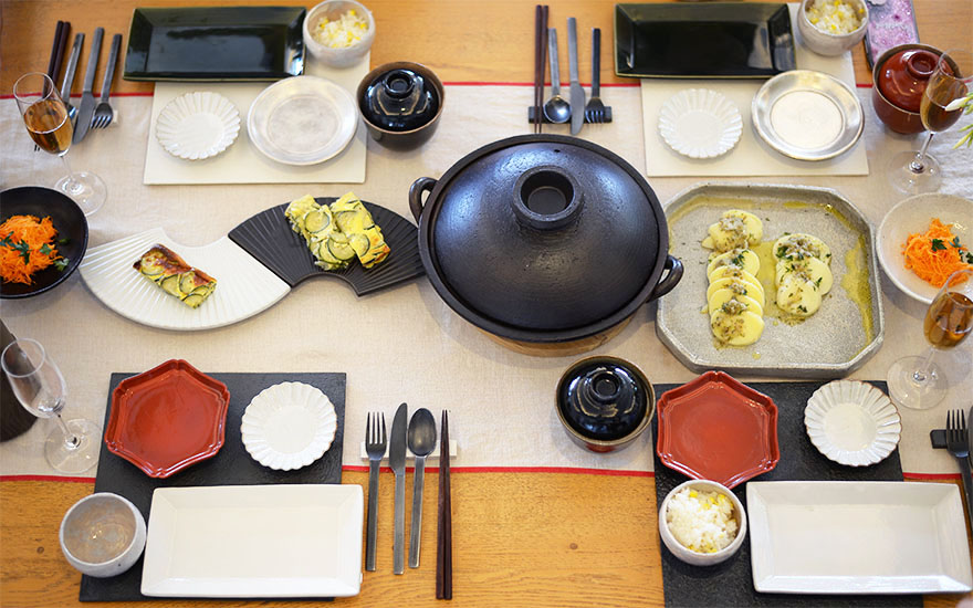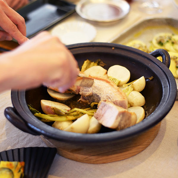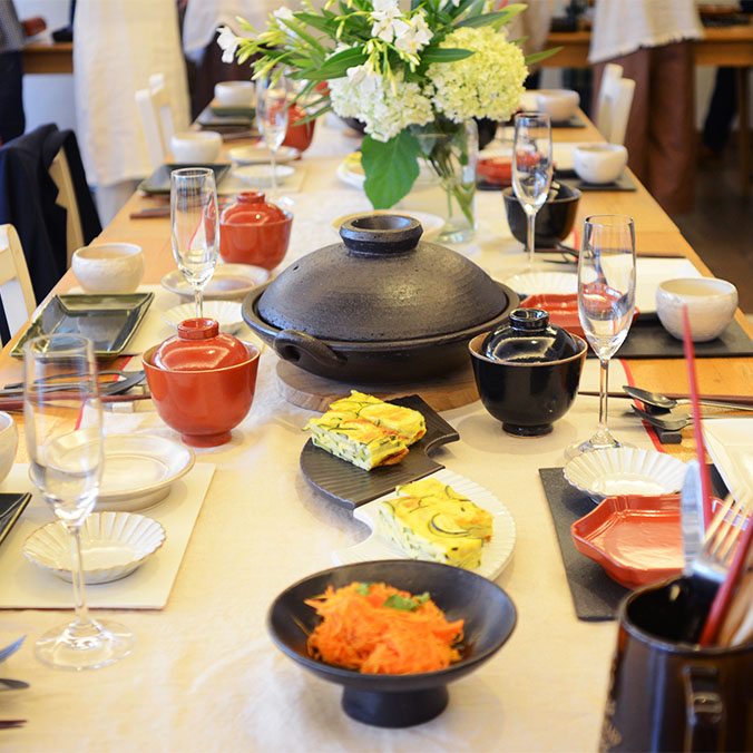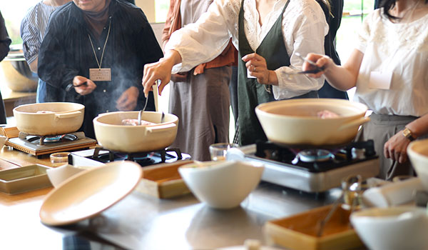 社食ではお客様に実際に土鍋で料理をするところから