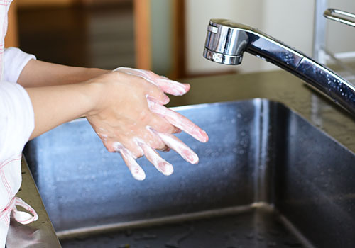 エプロンをつけて、しっかり手を洗い、調理スタートです。