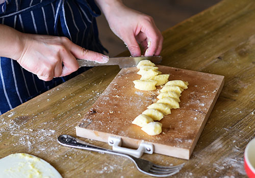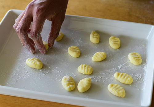 次々ときれいなニョッキを作り出す社員が1人。