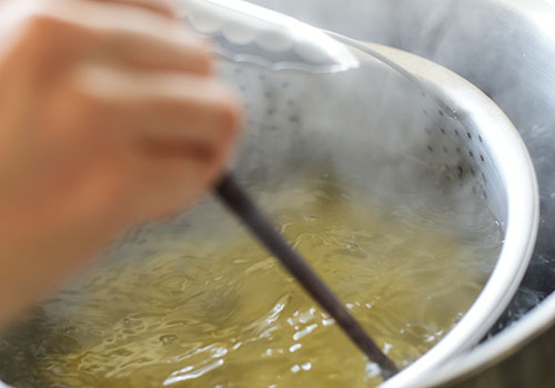 そして、できたものから少しずつ茹でていきます。
