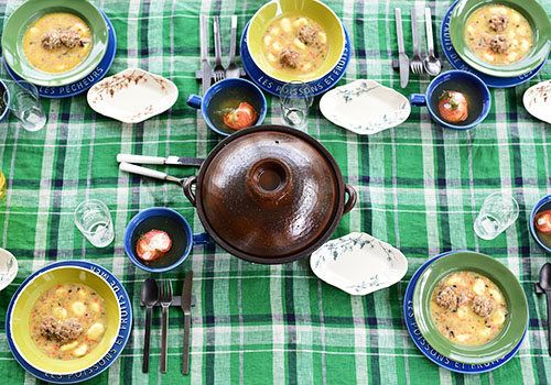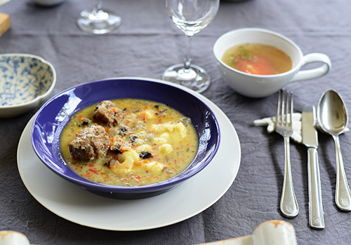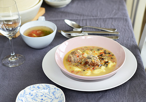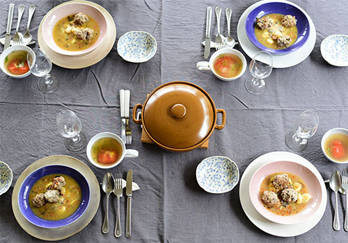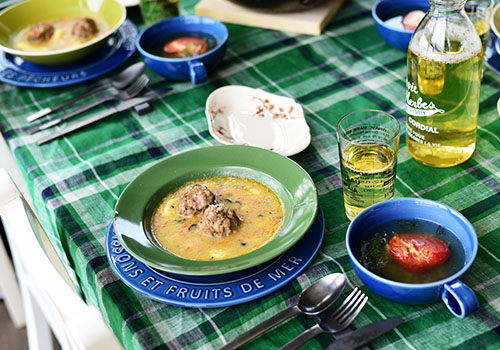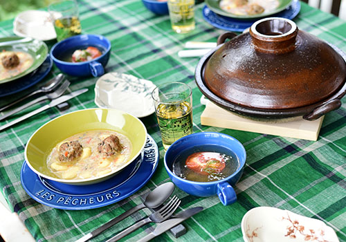 スープカップもパルタジェを使うことでインディゴの色で統一感を出しています。