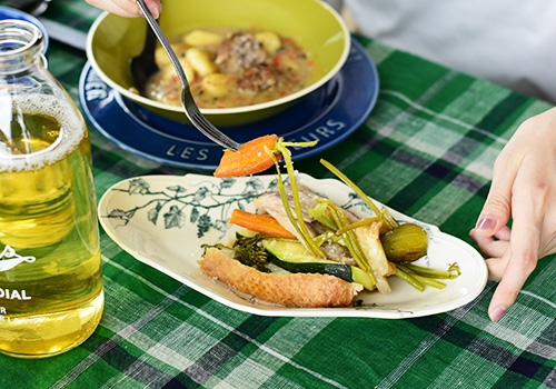 何層にも重なった野菜と豚肉とバゲットは見るからに美味しそう!