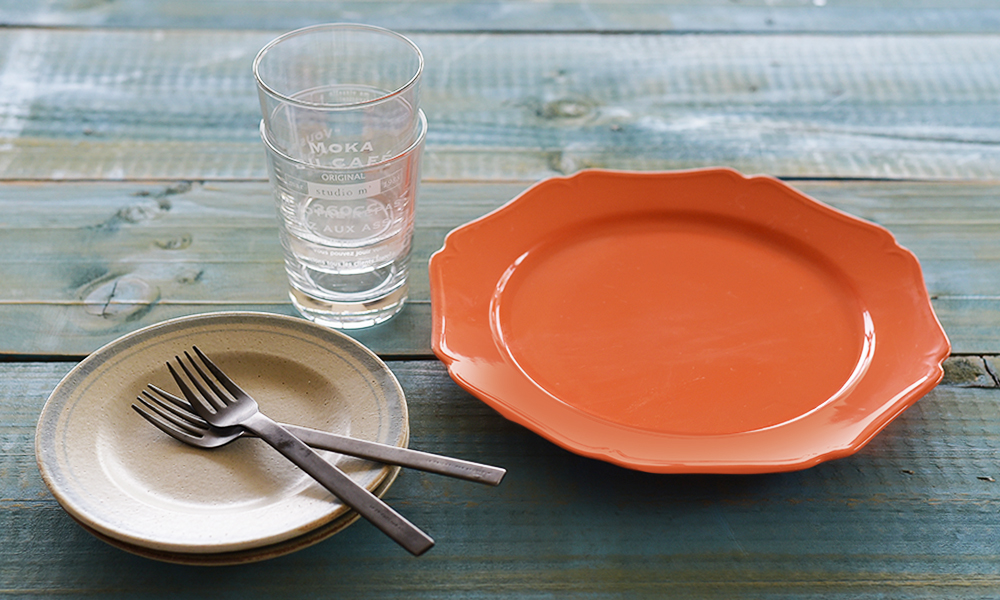 ブラジルのビーチでお昼から一杯。ビビットなオレンジカラーが照り付ける太陽を連想させます。リヴァージュの素朴な風合いは親しみがあり、家庭でも楽しめるコシーニャにぴったり。暑くても、爽やかに楽しみたいときにはグラスを組み合せるのがおすすめです。