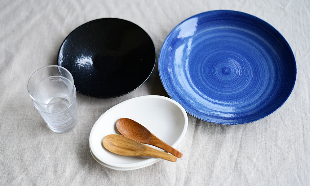 クリアなブルーと白い砂浜が美しいキューバのビーチをイメージしたコーディネート。アポロニアの広がりがある形状は、どこまでもつづく広い海を連想させます。すっきりしたフォルムのプレートと合わせることで、歴史的な街並みと共存する洗練された雰囲気を表現しました。