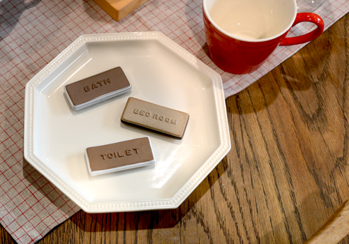 文字は「TOILET」「BATH」「KITCHEN」「BED」の4種類。