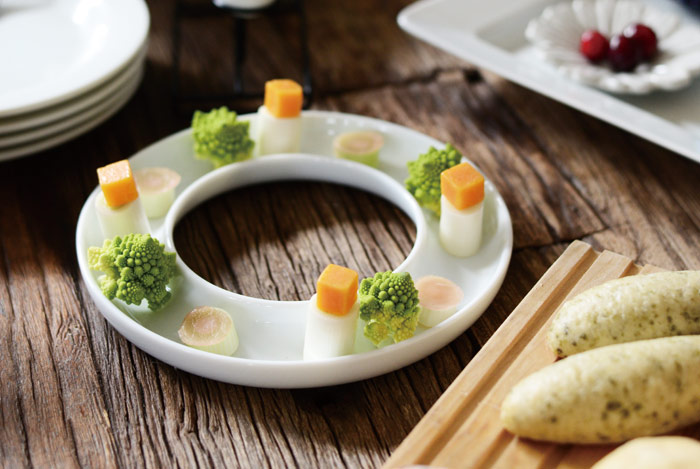 細い盛り面には前菜やお菓子、おつまみなどちょこちょこと盛り付けて。