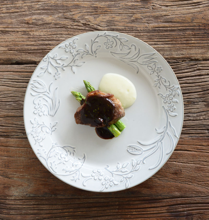 写真のように中央部分に少量を盛り付けると、柄も綺麗に見えお料理を引き立てます。