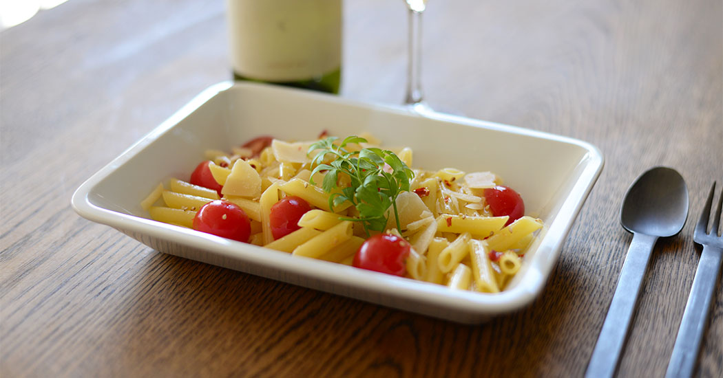 自然と余白ができるので、形の決まりにくいパスタやサラダにもおすすめ。
