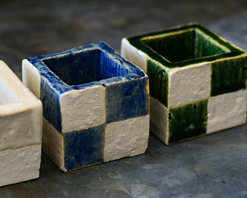 ちなみに、この銀彩市松には荒土が使われています。