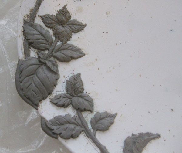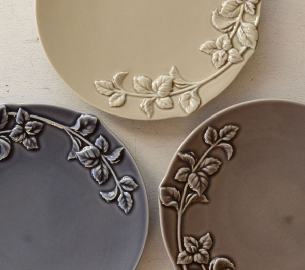 葉脈や凹んだ部分の装飾に釉薬が溜まり、