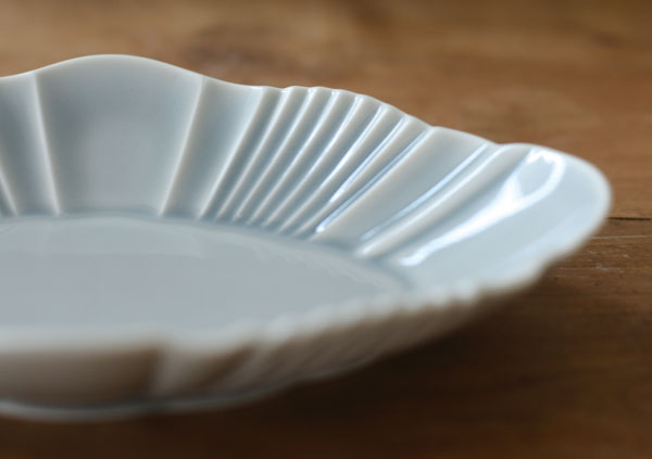 真っ白な白釉は形状がよりくっきりと見え、透明感と青みがあるグレーは