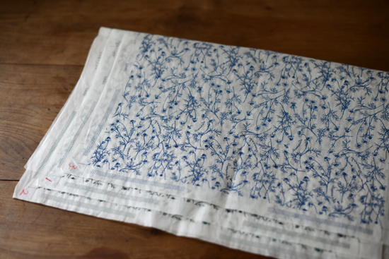 貼る工程で自然とできる図柄の濃淡や貼りムラなどがどこが味わい深く、