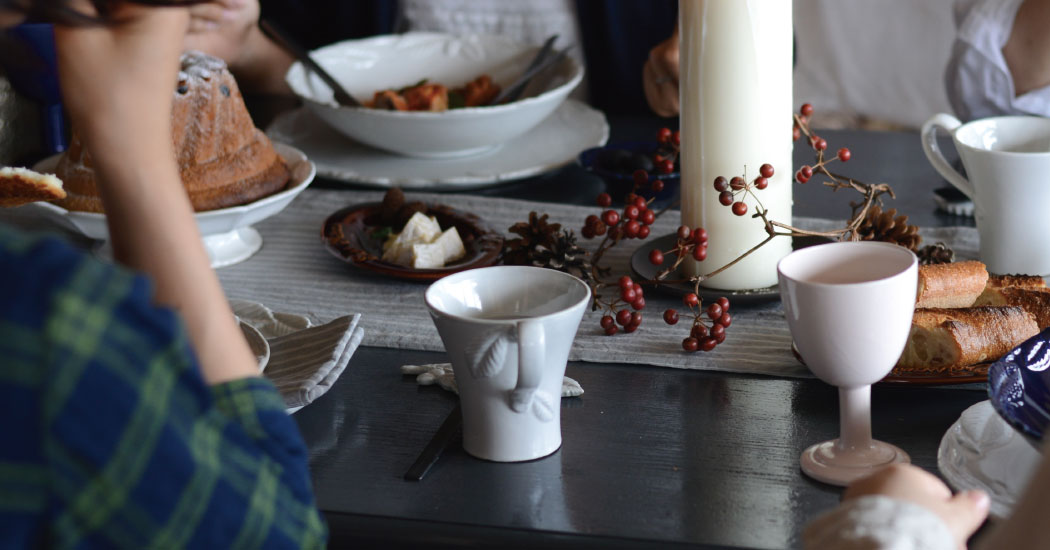 いつもの器を1つだけルボアに変えるだけで、ガラリとパーティーシーンに様変わりしますよ。