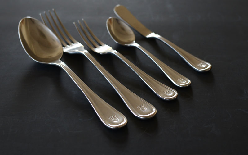 スプーンやフォークの頭部は大胆な曲線を描きながら、