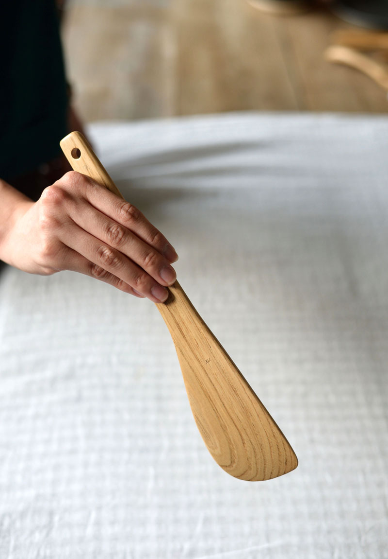 木のへらはフライパンや鍋のあたりが柔らかく、へら本体の重さも感じにくく軽やかに料理ができます。