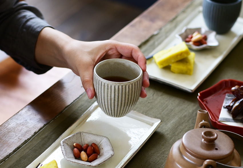 来客用にはルポゼの茶托や菓子皿を合わせて、少し上品にコーディネートしてみてはいかがでしょうか。