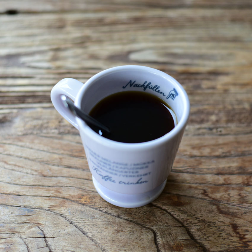 裏側にはドイツ語でカフェのコーヒーのメニューが書かれています。