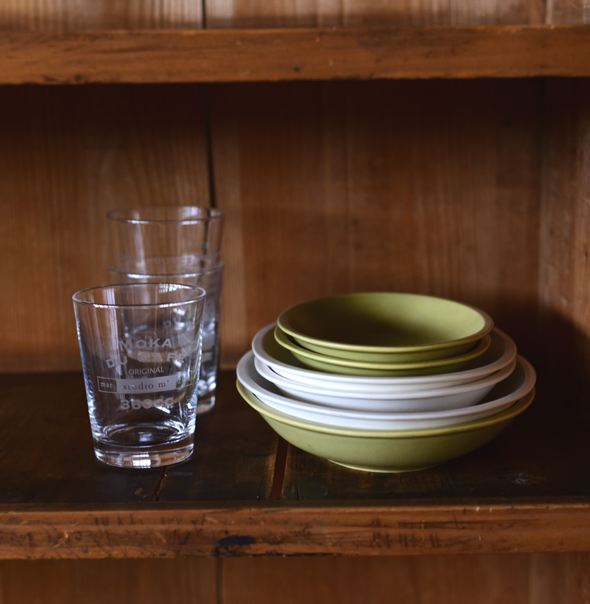 サラダや、パスタ、などいつもの料理を盛り付けても新しい料理に見えるような新鮮な雰囲気を纏っています。
