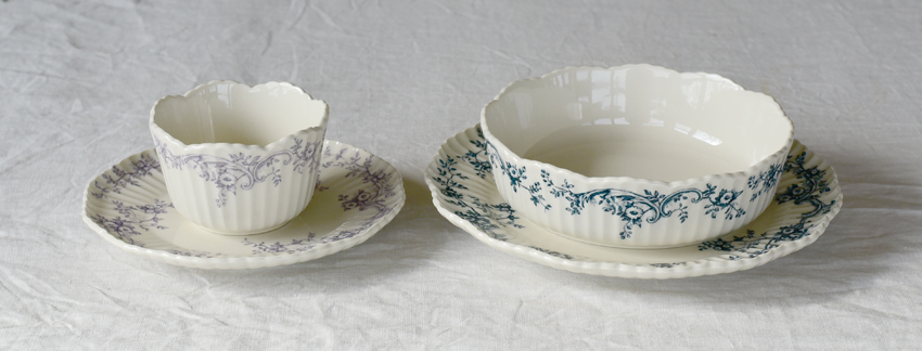 上品な可愛らしさのあるラベンダーと、イギリスのクラッシックな絵付けの器を思わせるインディゴ。