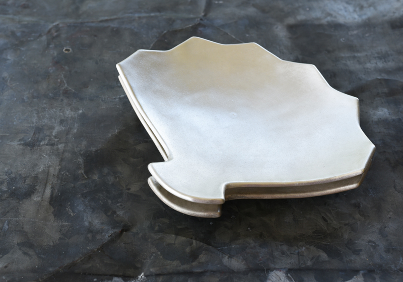 粘土で形作ることで温かな揺らぎのある扇皿。