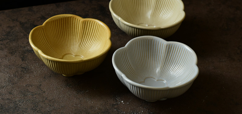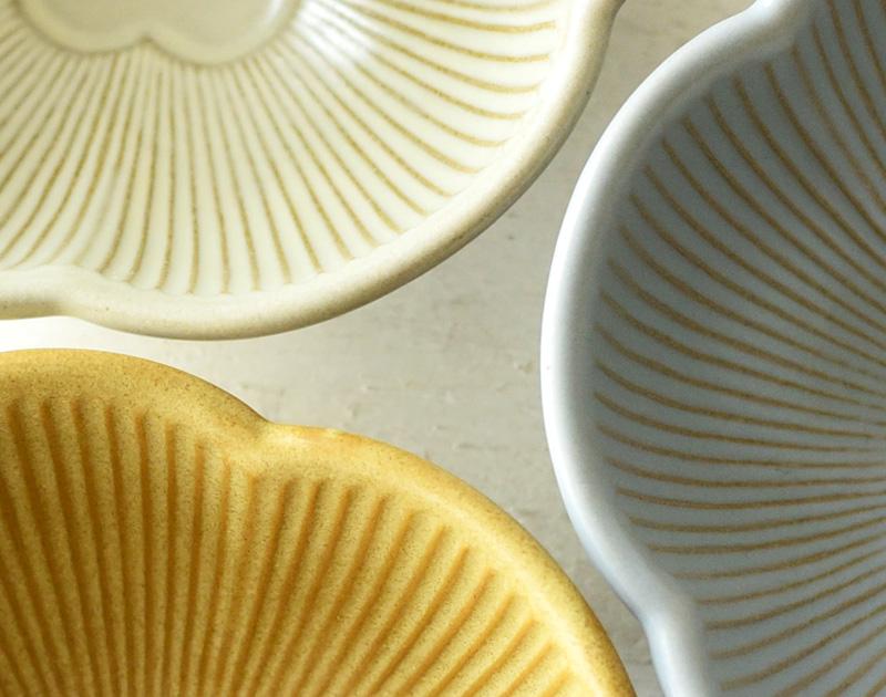 1つ1つに表情があり素材感が魅力的でマット質の色は食材の持つ艶や輝きをより引き立たせます。