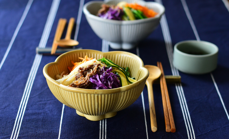 ビビンバや野菜たっぷりの春雨スープなど、具沢山の料理も安心して盛り付けることができます。
