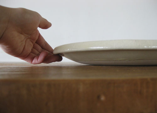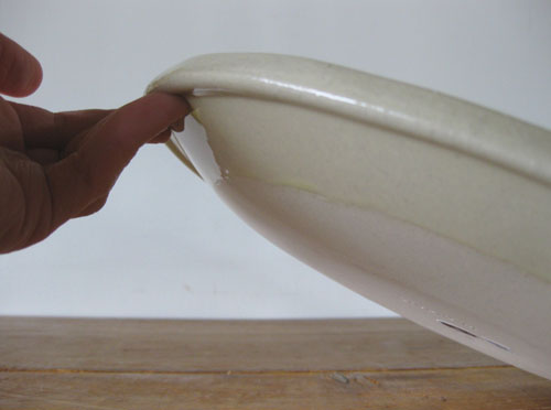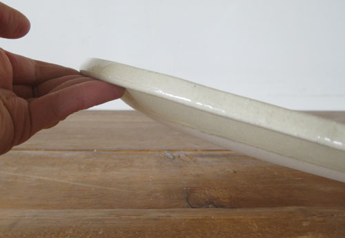 影からもわかるように、お皿の縁の裏にくるっと一周なめらかにくぼみがあります。