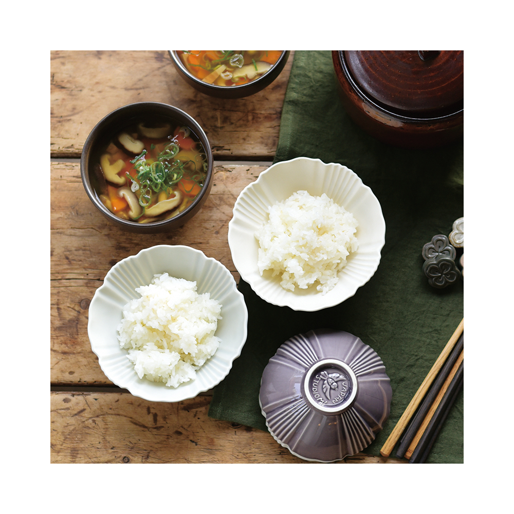 ふんわり軽やかなレリーフが上品で、食卓に馴染みが良い色味です。