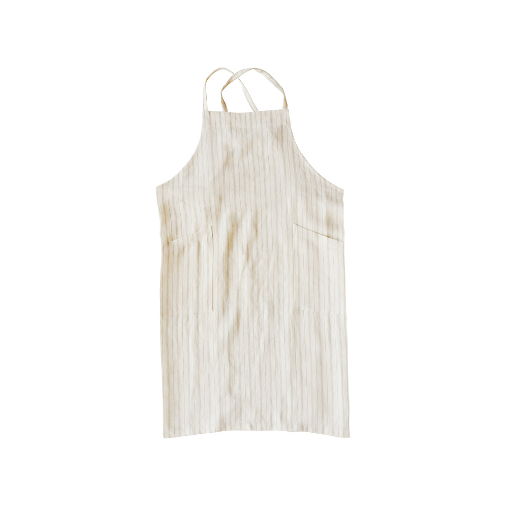 気持ちの良い白地に、麻の色をそのまま生かした生成のラインが入った生地。