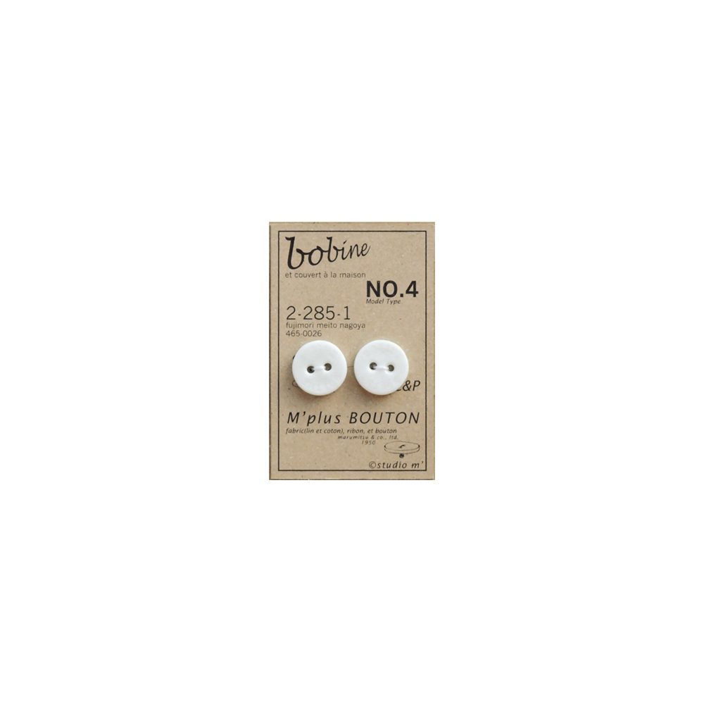 白磁の透き通るような白さとぽってりと可愛らしい印象の装飾用ボタン。「BOBINE」と凹の小さなロゴが入っています。化粧ポーチや、小さな鞄のワンポイントとして使用したり、手づくりのアクセサリーにしても。使う人のアイデアで次第で用途が広がるボタンです。