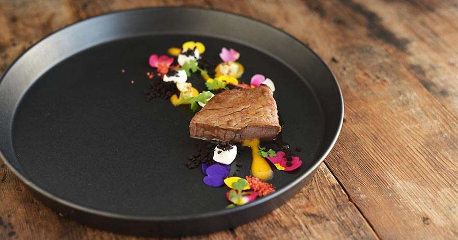 コースを構成する際、空間に変化をつけるため白皿に対比する黒皿を取り入れることも必要。