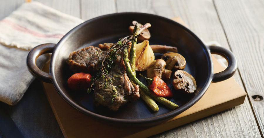 ドゥーブは底がフラット形状なので、ナイフ・フォークでも食べやすい土鍋です。