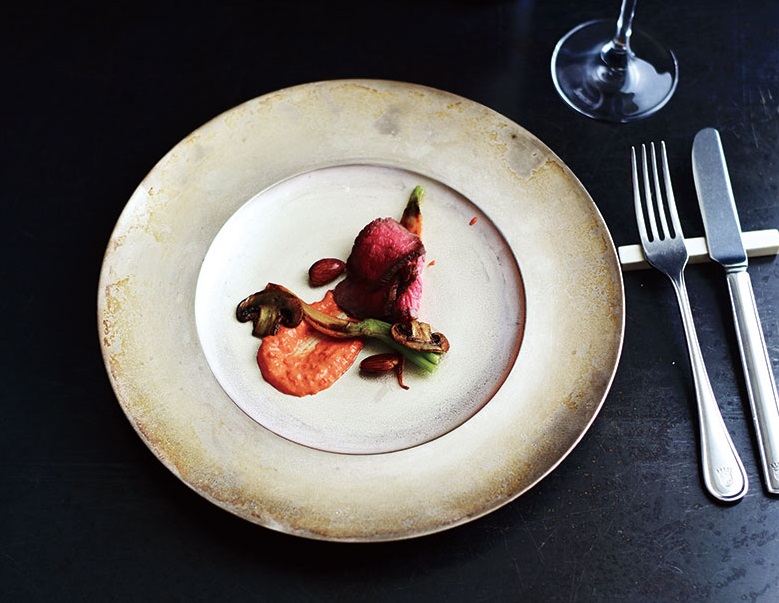 銀彩の器は、ダウンライトが配灯されたバーでは盛り付けられた料理がパッと際立つ効果と、