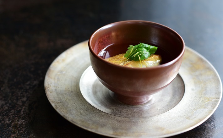 使用する器は淡く深みのある輝きをみせる銀彩の器。