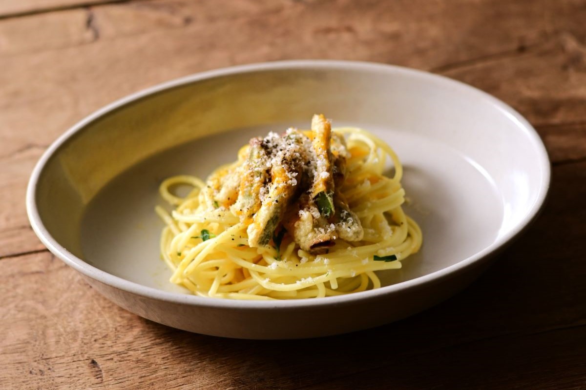 ほんのり深さのあるプレートは、食材が中央に自然とおさまり、見た目が整いやすいのが魅力。いつものパスタや炒め物が、ちょっとこなれた印象に。プレートに“余白”があることで、料理が引き立ちます。