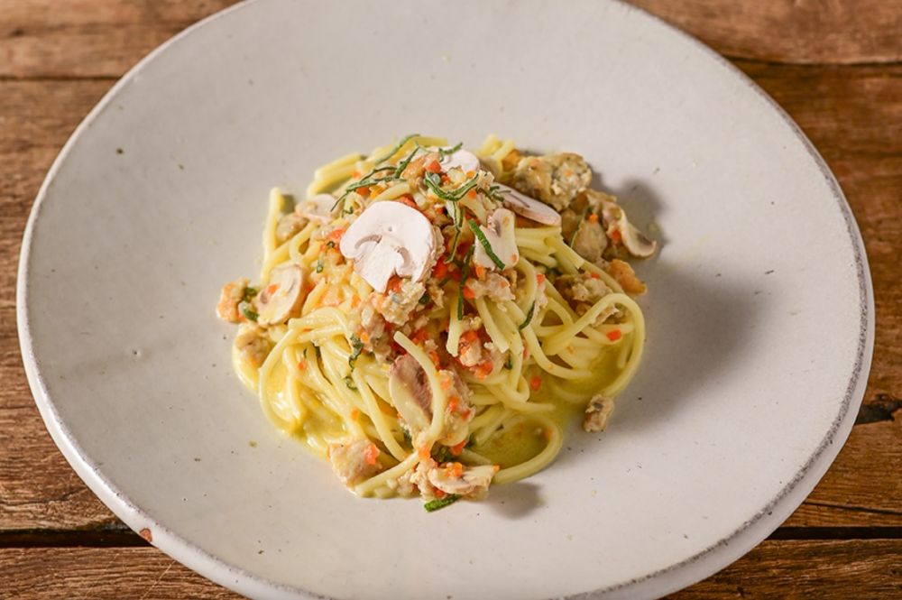 白みその甘さのなかにセージの爽やかな香りがアクセントとなるパスタ。