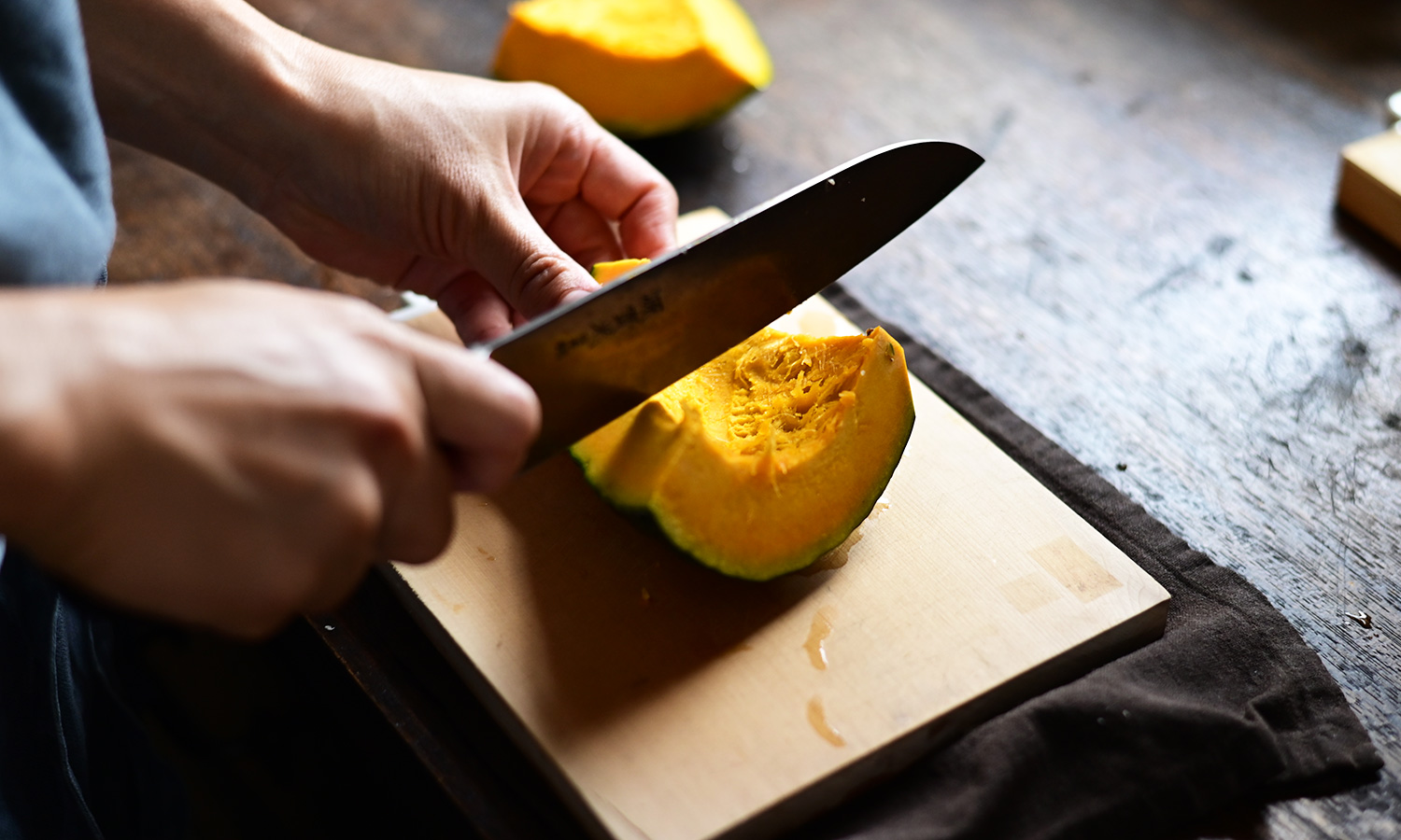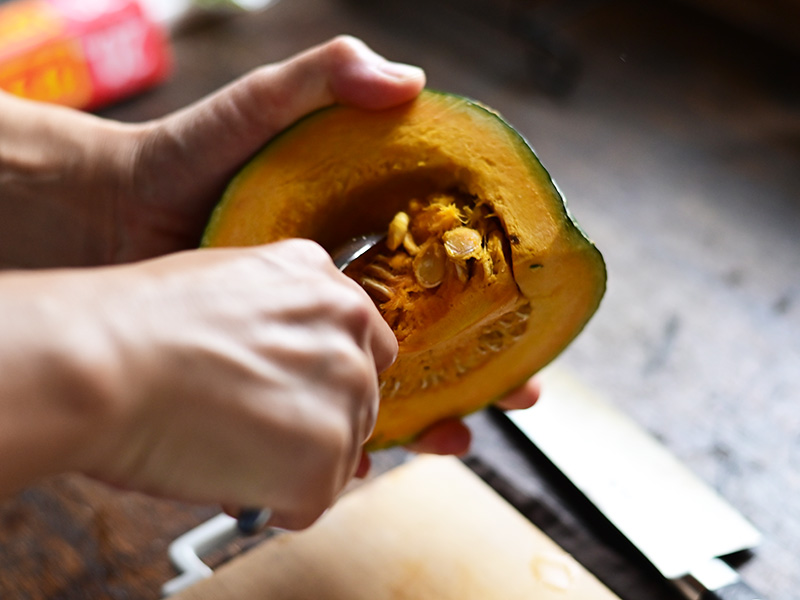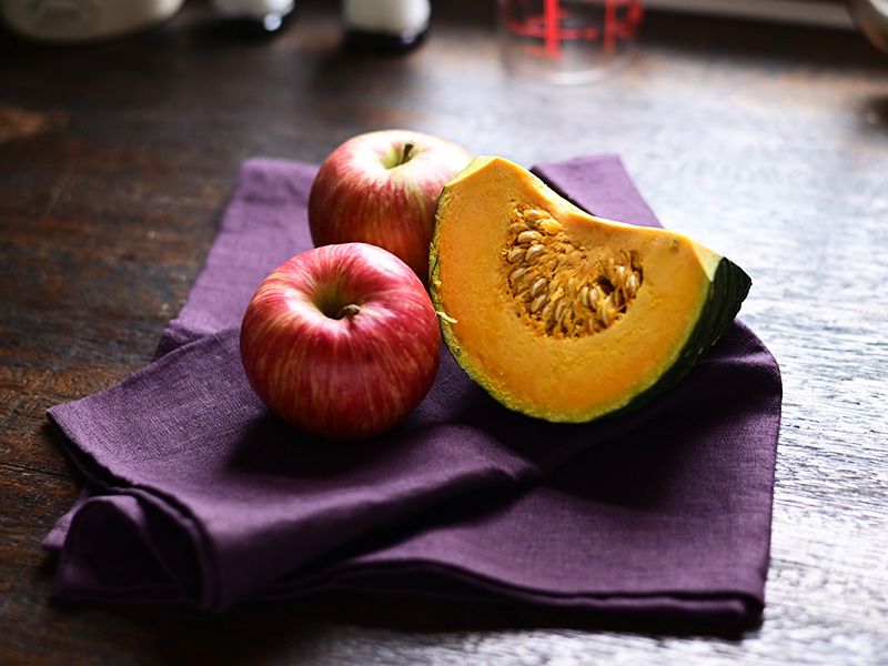 かぼちゃは夏に収穫してから2〜3ヶ月貯蔵し、程よく水分が抜けた秋が食べごろに。