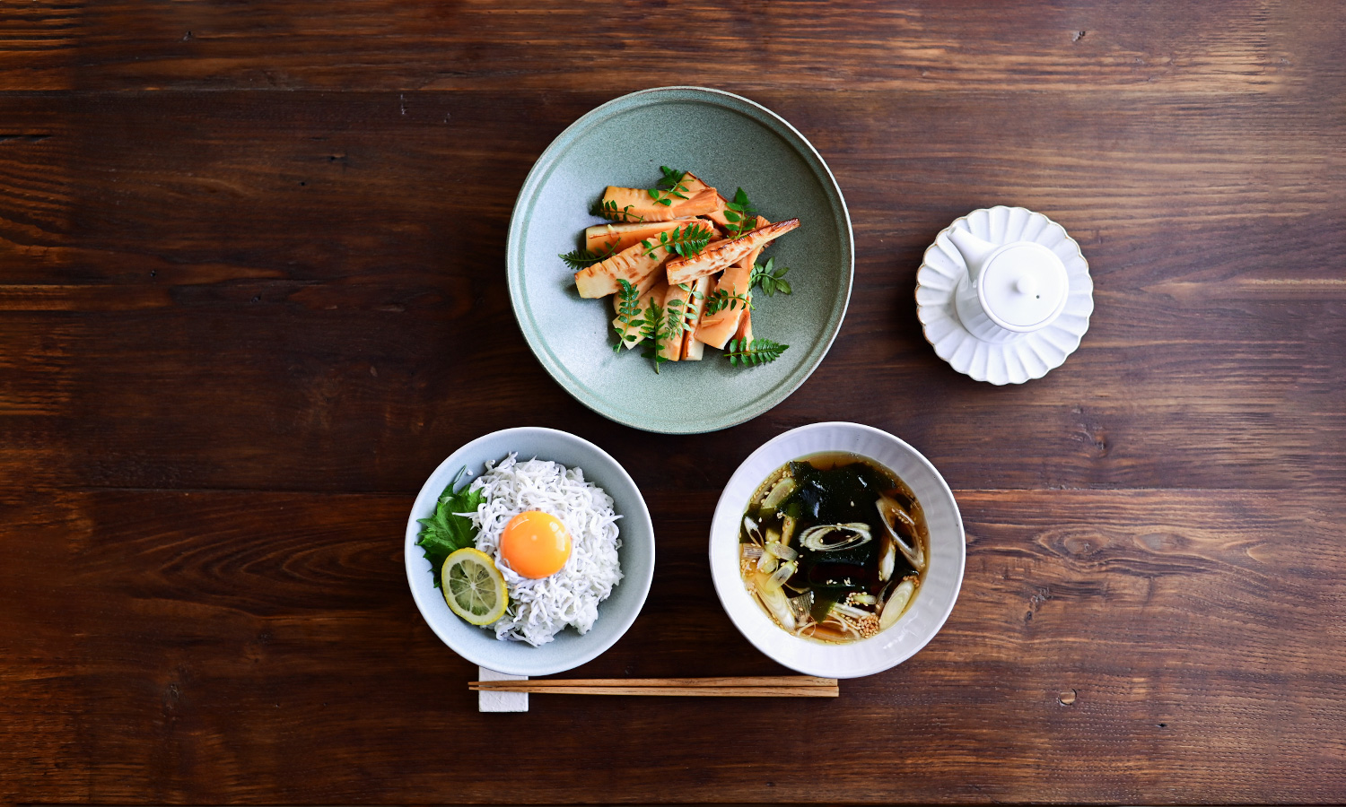 春しらすは柔らかく脂がのっていて、旬の生わかめは肉厚で風味豊か。