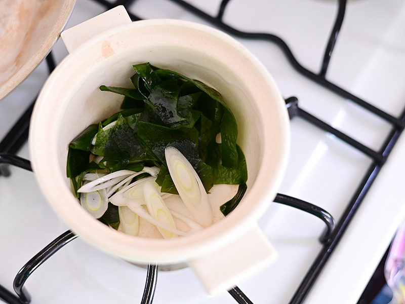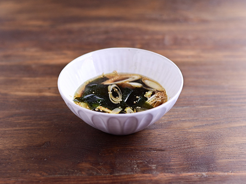 だしを入れて好みの味を整えたら、わかめスープのできあがり。