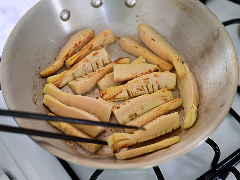 たけのこの水煮は食べやすくきったらバターを入れたフライパンで