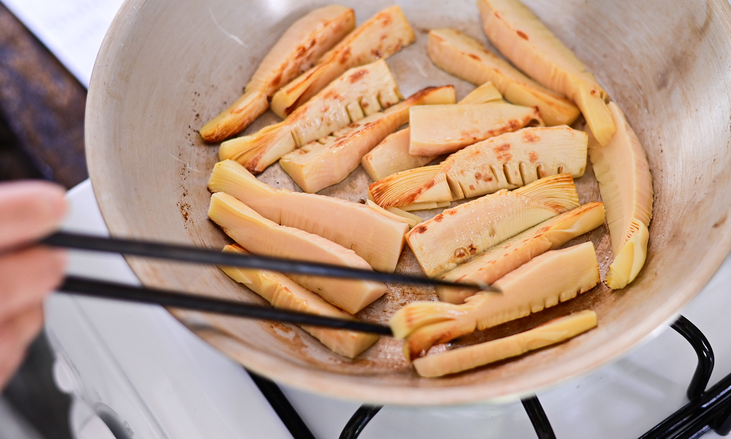 こんがりと焼き色をつけ、鍋肌から醤油をまわしかけるだけ。