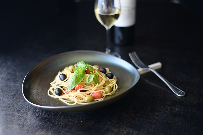 お皿の中央には窪みがありパスタ料理など躍動感ある盛り付けができます。