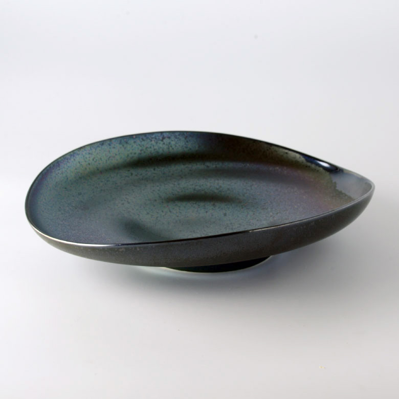 繊細かつ大胆にデザインされた流線形に施釉された窯変黒は動きのある輝きを見せます。