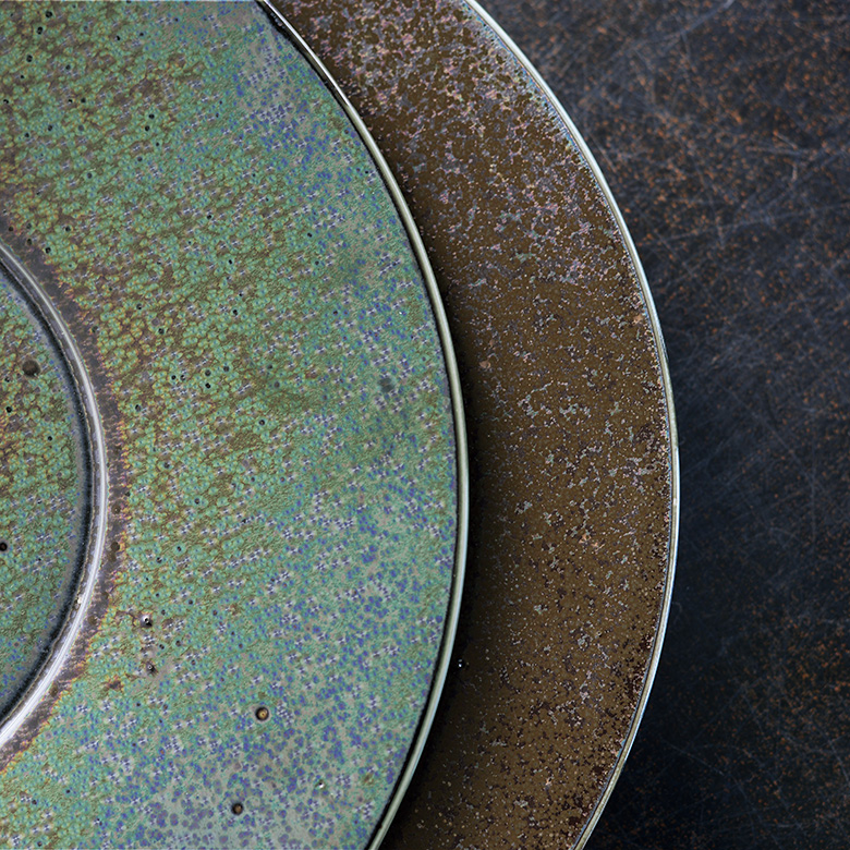 窯内部の化学物質と釉薬に含まれる物質が反応しあうことで様々な色相が生まれ、
